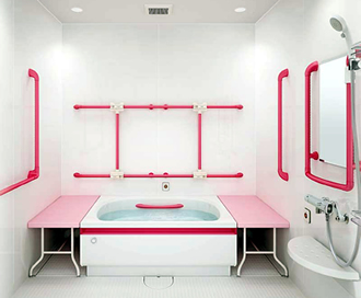 永年に渡る情報の蓄積、人間生活工学に基づく人の動作・生理・心理をもとに開発された介護・自立支援設備ユニットバス。
